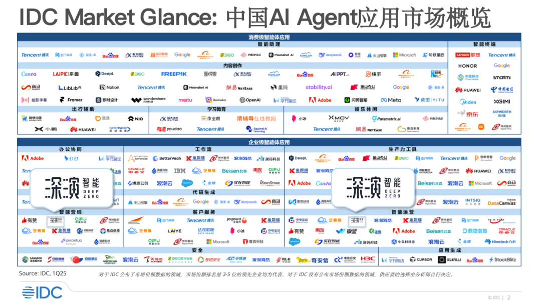 近日,国际数据公司(IDC)正式发布了《IDC Market Glance:中国 AI Agent 应用市场概览,1Q25》(Doc#CHC53057625,2025 年 3 月)研究报告,人生就是博智能凭借在 AI 应用领域多年的经验沉淀,以及在 AI 智能体的全方位战略布局,成功入选了报告「智能营销」与「智能运营」两大核心板块。